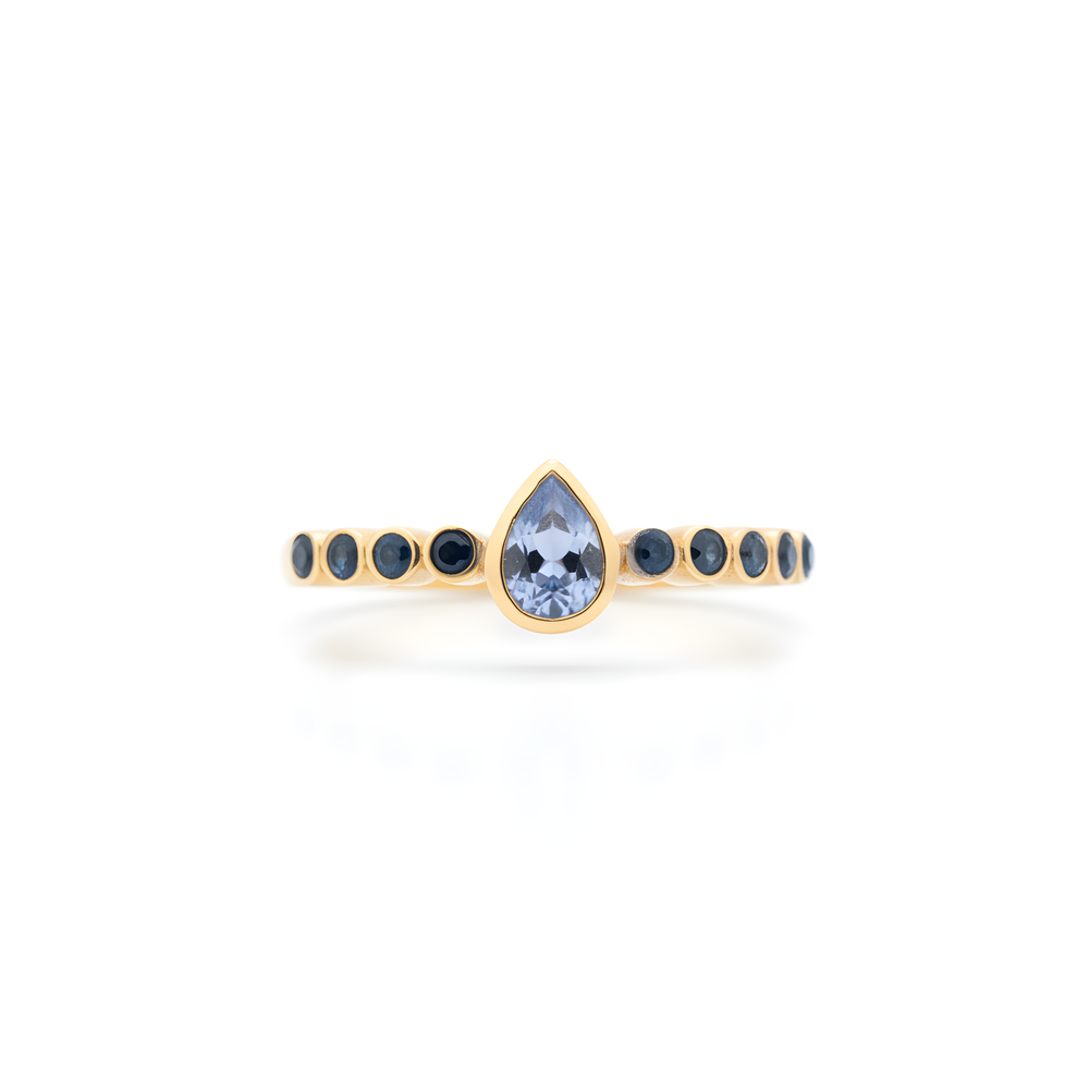 Paauksuotas sidabrinis žiedas su safyrais „Nakties giesmė“