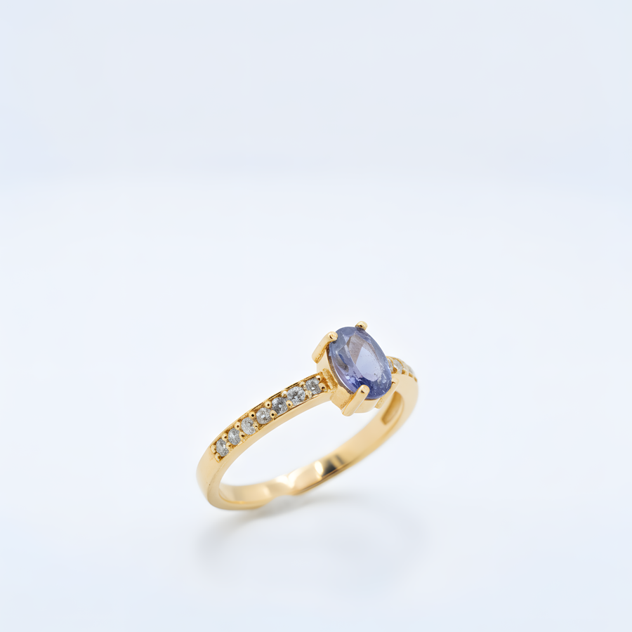 Paauksuotas sidabrinis žiedas su tanzanitu „Vandens šviesa"