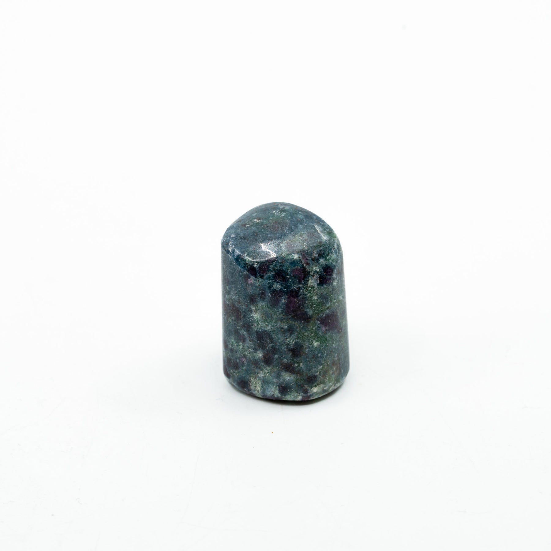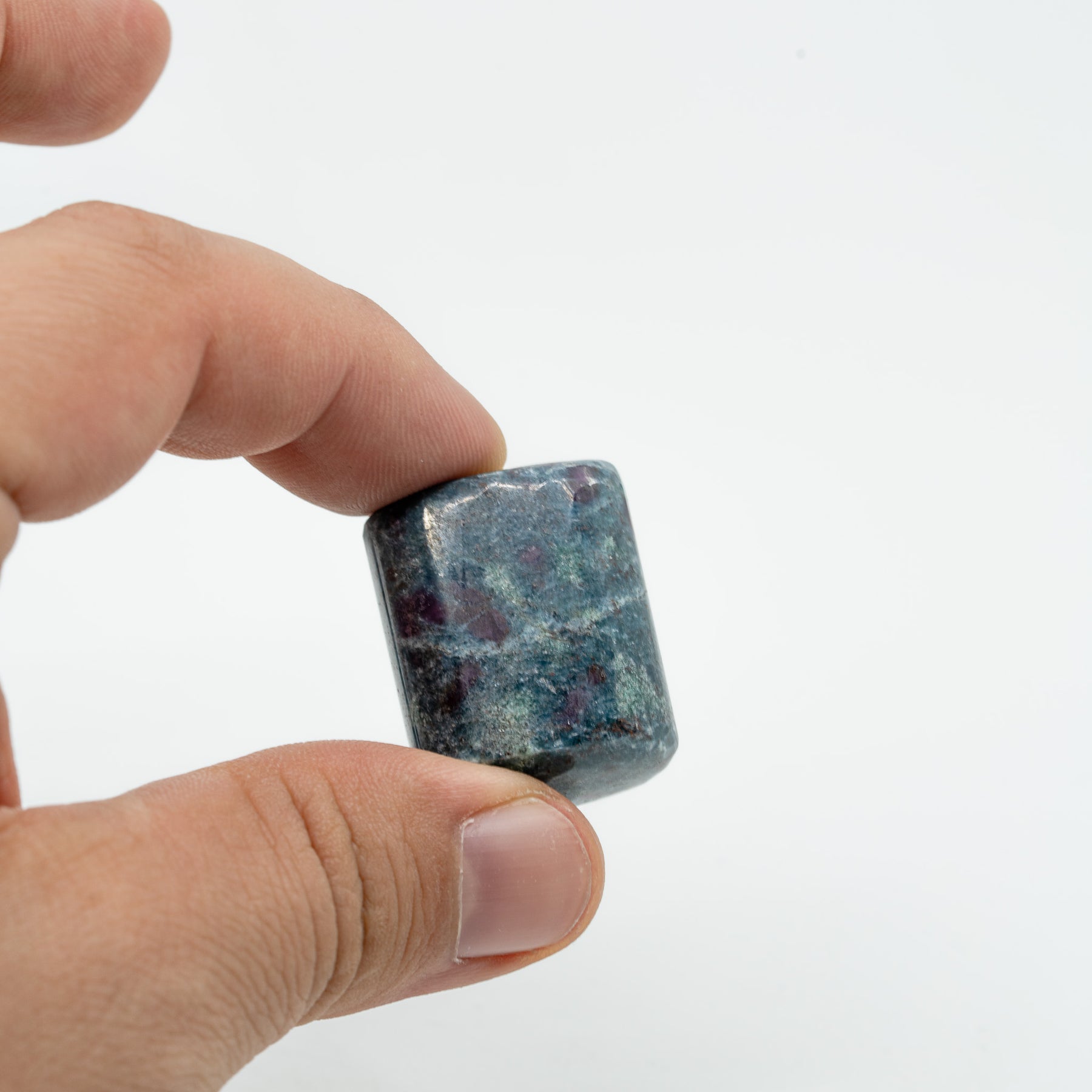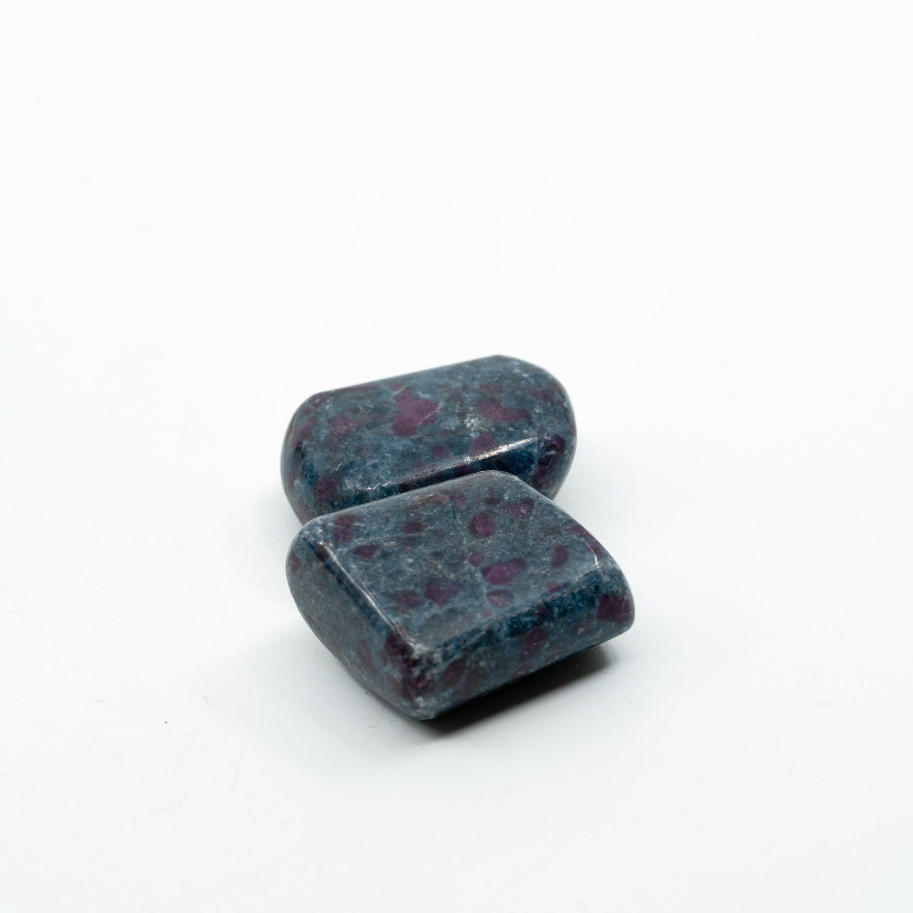 Kianitas su rubinu – tai unikalus dviejų stiprių mineralų junginys, kuris sujungia dvasinę ramybę su vidine jėga. Mėlynasis kianitas yra žinomas kaip aiškumo, intuicijos ir sąmonės balanso akmuo – jis padeda išlaikyti vidinę pusiausvyrą, harmonizuoti mintis bei sustiprinti ryšį su aukštesnėmis energijomis. Tuo tarpu rubinas, paslėptas tamsiai mėlyname fone, įneša ugnies, gyvybingumo ir drąsos – jis siejamas su širdies energija, meile gyvenimui bei aistra.