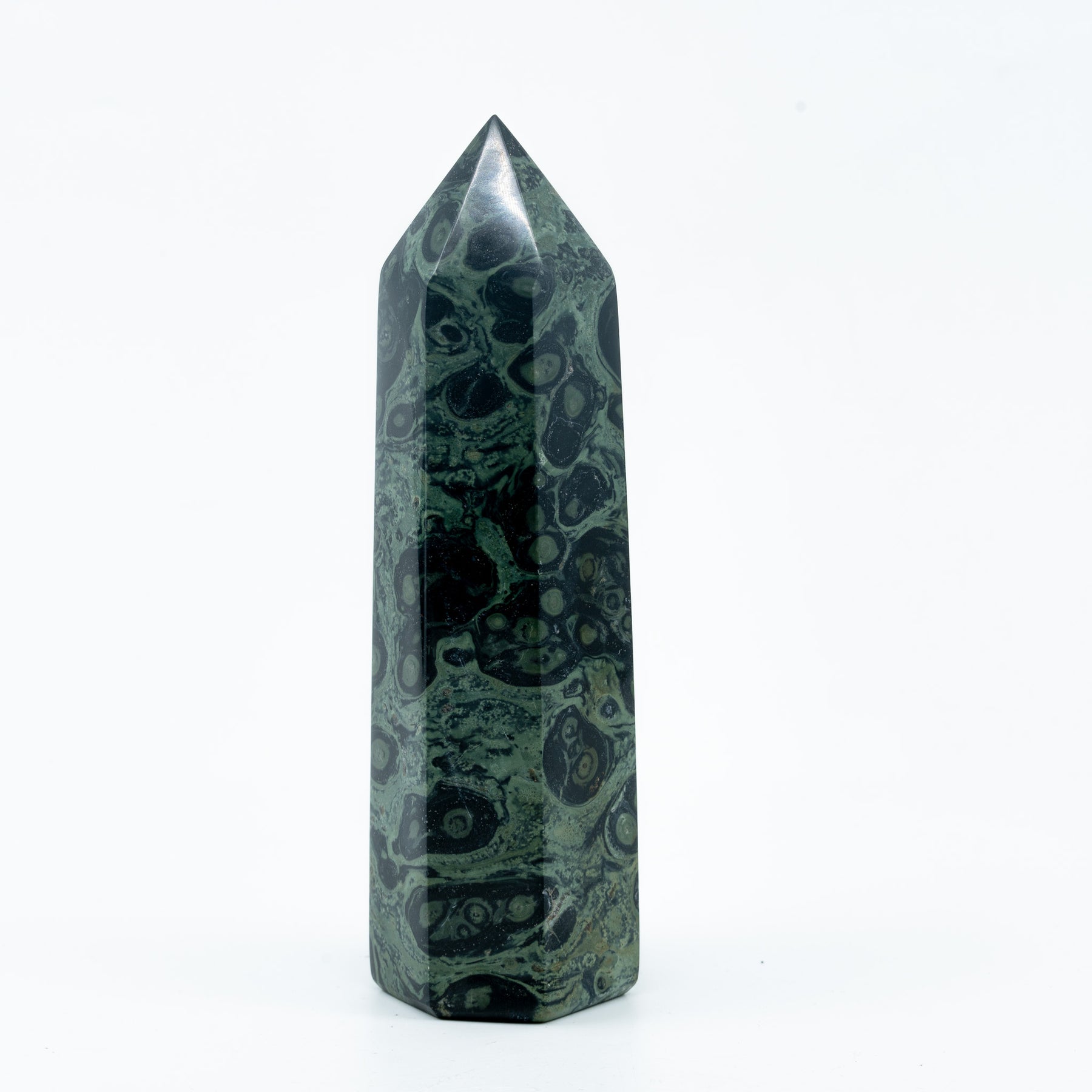 Santarvės ir ramybės akmuo, papildytas maitinančia energija iš gamtos. Šis akmuo, stabilizuos ir suteiks energijos jūsų kūnui. Jis suderins jūsų fizinį, emocinį, psichinį ir dvasinį kūną su eteriu. Tamsūs apskritimai ir žali sūkuriai ant akmens simbolizuoja komfortą, apsaugą, ramybę, atsipalaidavimą, taip pat pusiausvyrą ir atsinaujinimą. Jame egzistuoja visos energijos kurias galite gauti iš kambaba-jaspio kristalo!