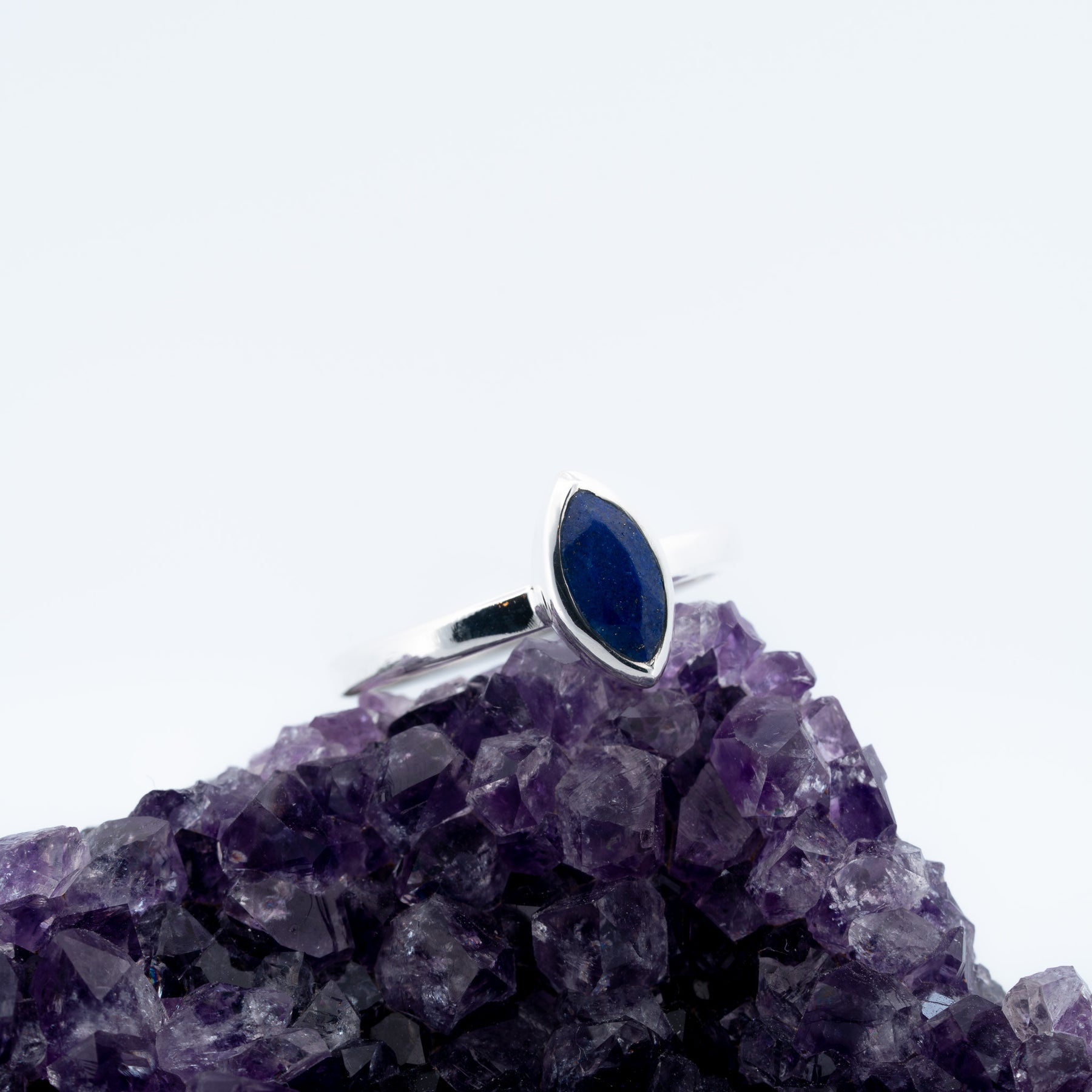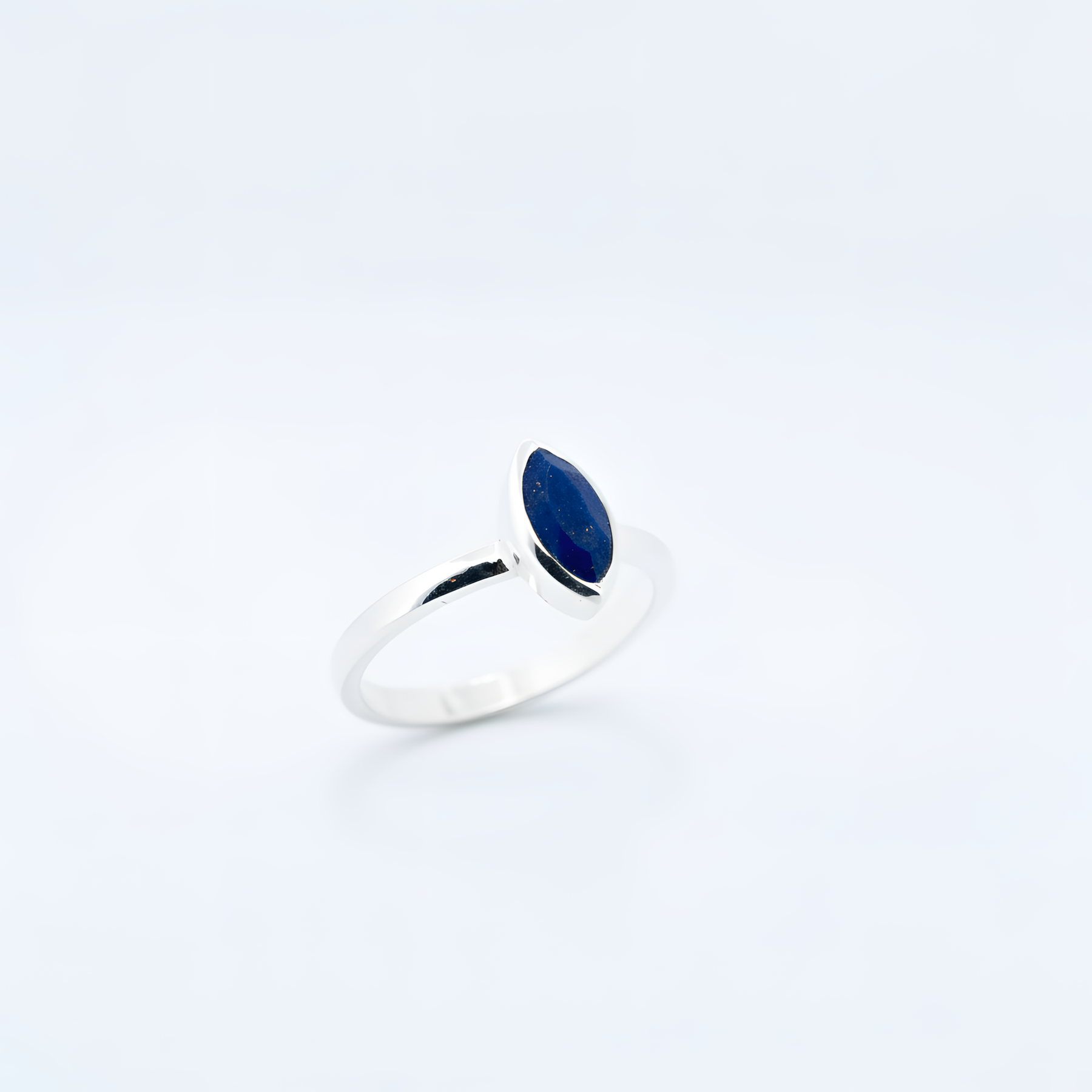 Lazuritas nuo senų laikų buvo vadinamas dangaus akmeniu. Jis skatina išmintį, savęs pažinimą ir vidinę taiką, stiprina pasitikėjimą savo tiesa. Šis žiedas – tarsi rami minties banga, atnešanti šviesą net giliausioje tyloje.
