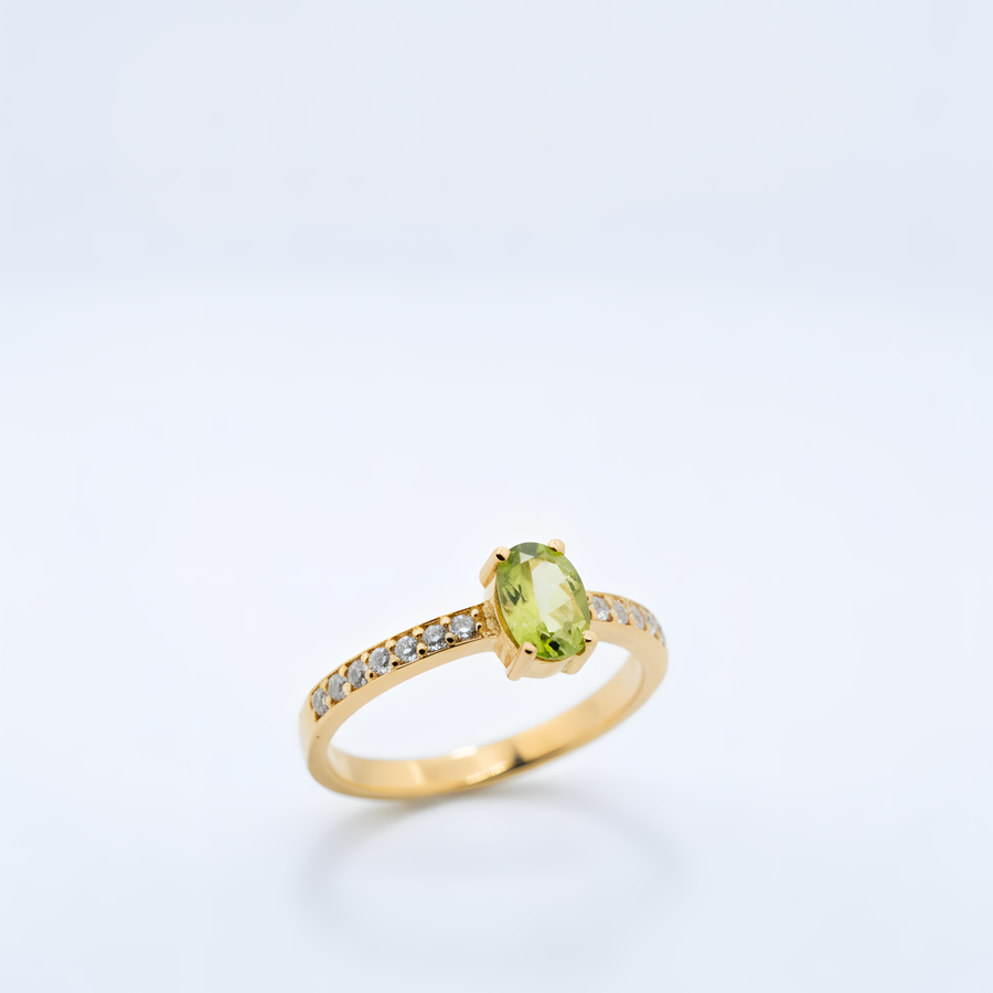 Paauksuotas sidabrinis žiedas su peridotu „Žemės šviesa“