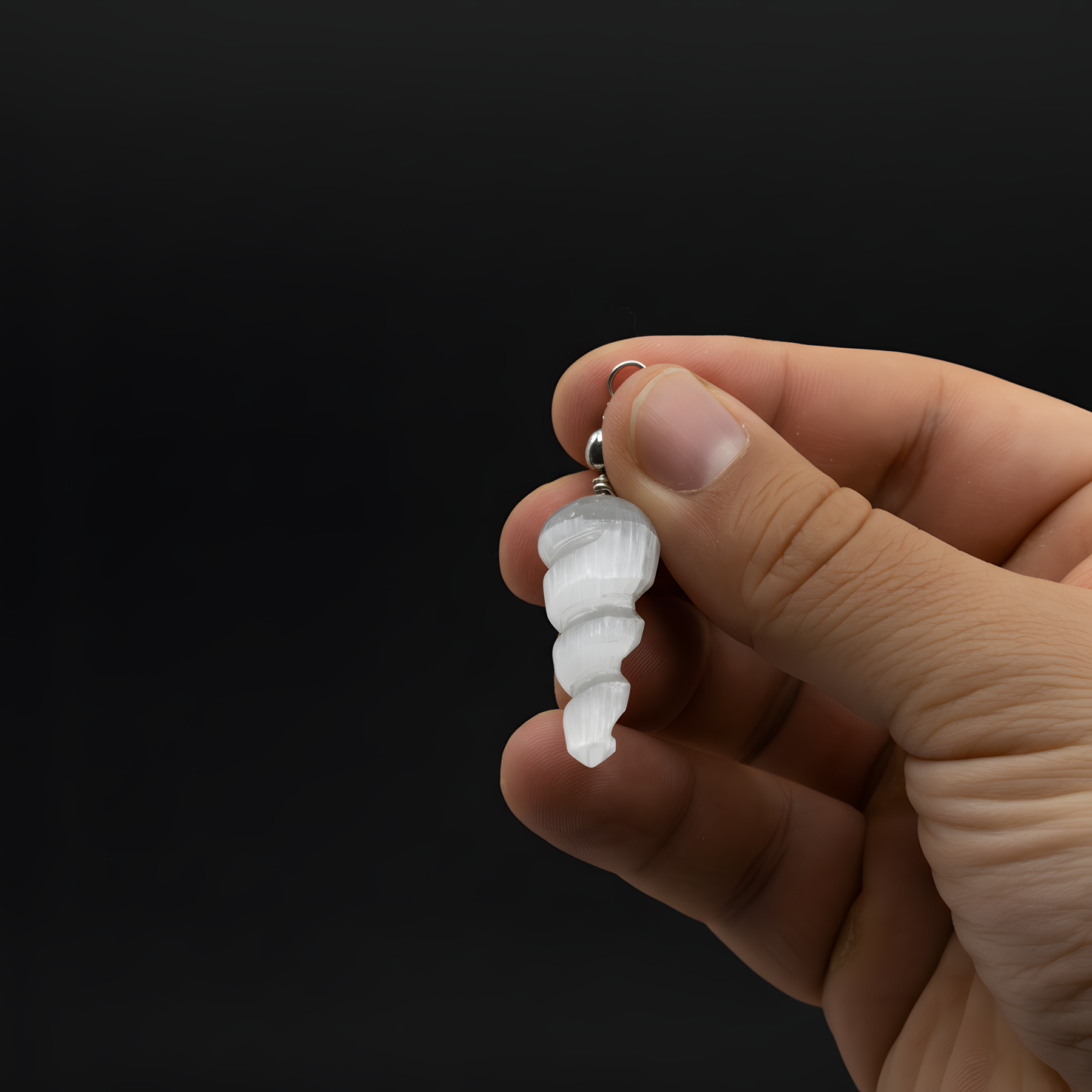 Šis subtilus pakabukas iš natūralaus selenito simbolizuoja šviesos kelią ir dvasinį augimą. Spiralės forma vaizduoja energetinį judėjimą į viršų, nuolatinį augimą, tobulėjimą ir šviesos srautą, kuris veda iš chaoso į ramybę.
