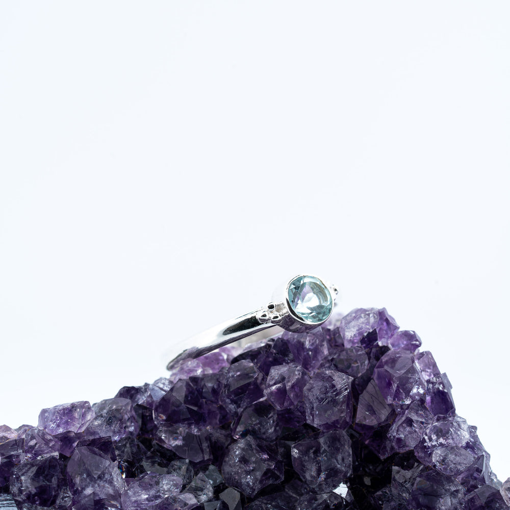 Kai pasaulis triukšmingas, šis žiedas primena, kad vidinė ramybė – tavo tikroji jėga. Skaidrus mėlynas topazas skleidžia tylų pasitikėjimą, tarsi šviesa po audros. Jo spindesys ramina mintis ir skatina aiškumą – tiek kasdieniuose sprendimuose, tiek širdies jausmuose.