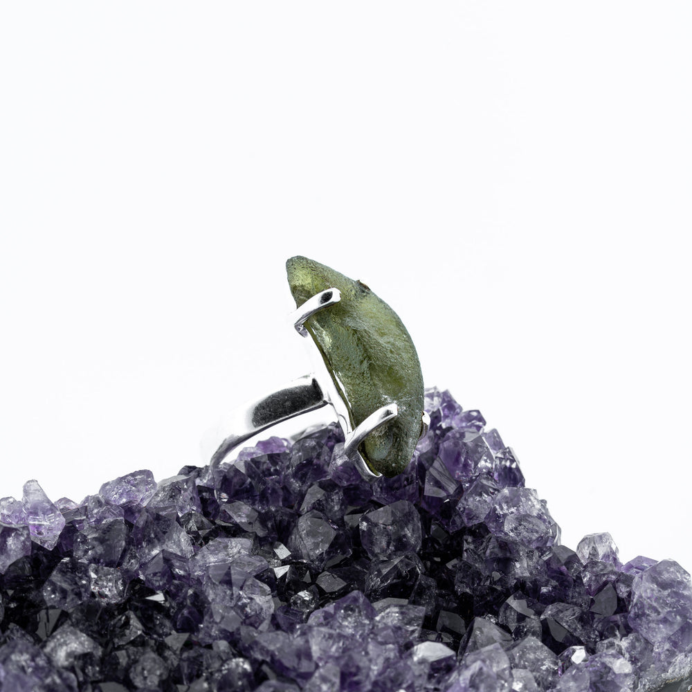 Sidabrinis žiedas su moldavitu "Žvaigždžių lašas"