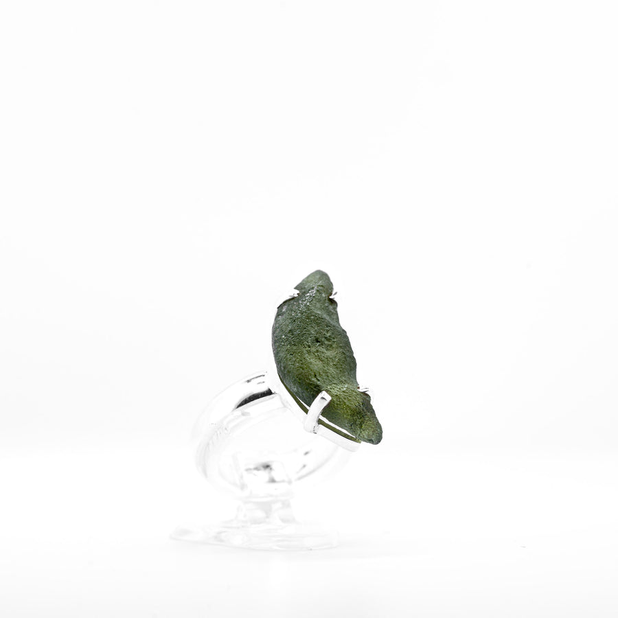 Šis moldavitas – tai ne šiaip akmuo, o meteoritinės kilmės dovanotas žemės ir dangaus susiliejimas. Giliai žalias, tarsi paslaptimis alsuojantis, jis atspindi kosmoso energiją ir vidinės transformacijos kelią. Šio akmens forma primena pirminę, nesuformuotą gamtos galią – tarsi dar neužrašytą likimą.
