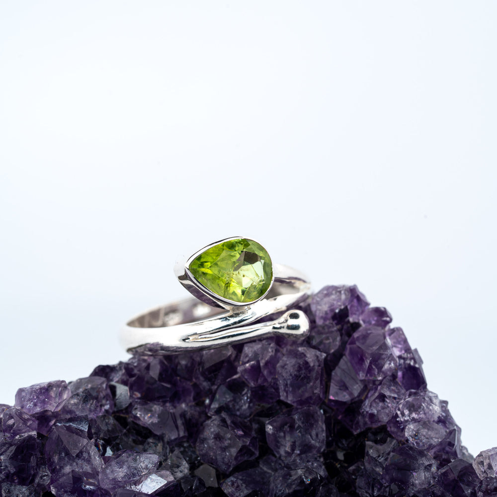 Šis peridotas – tarsi žaliosios gamtos alsavimas, įrėmintas sidabro šviesoje. Jo skaidri, gaivi spalva primena pirmąją pavasario žolę, kuri išlenda net po sunkiausios žiemos. Peridotas – tai širdies atvėrimo, atleidimo ir vidinės ramybės akmuo.