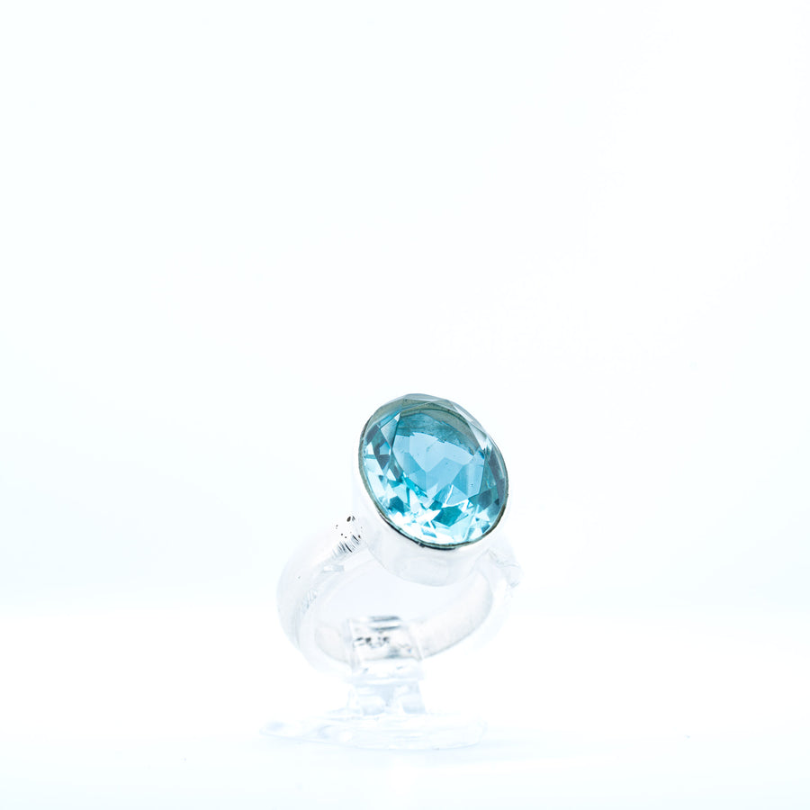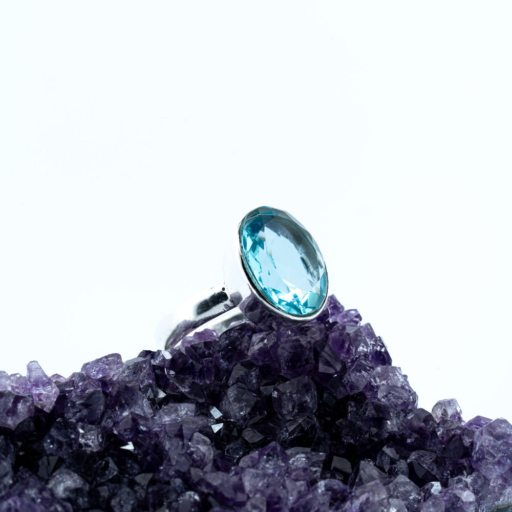 Šis topazo žiedas – tarsi gaivus oro gurkšnis po vasaros lietaus. Jo šviesiai mėlynas atspalvis ramina, išgrynina mintis ir atveria erdvę įžvalgai. Topazas nuo seniausių laikų laikomas aiškumo, sąmoningumo ir tiesos akmeniu – jis padeda susikoncentruoti į tai, kas svarbiausia.
