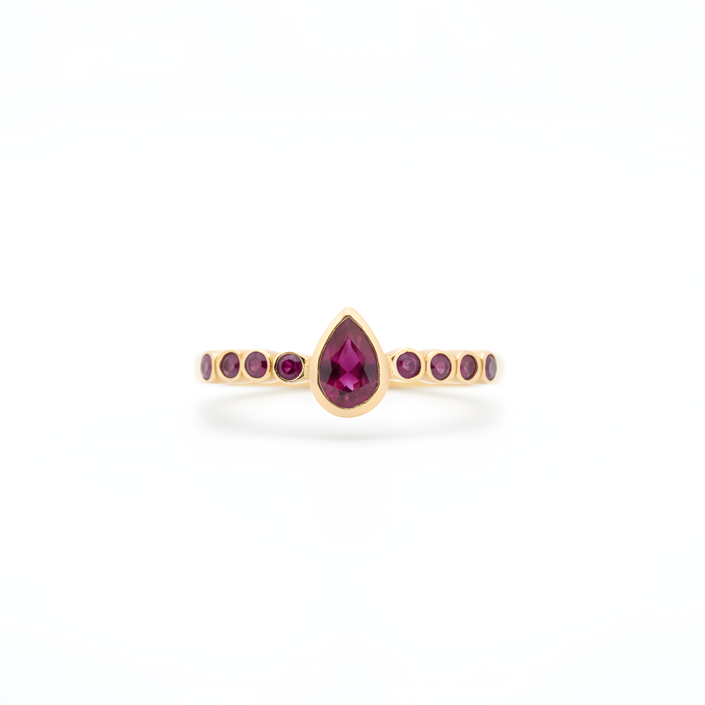 Pauksuotas sidabrinis žiedas su rubelitu „Širdies lašas“