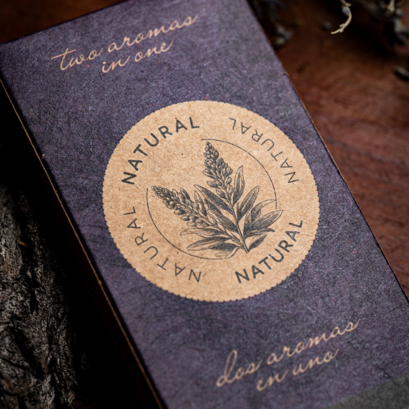Šios rankų darbo smilkalų lazdelės priklauso Sagrada Madre „Natural Duo“ kolekcijai, kurioje du aromatai susilieja į vieną harmoningą kvapą. Levanda ramina mintis ir atpalaiduoja kūną, o Olibanas (Frankincense) įžemina, suteikia dvasinį gilumą bei ramybės pojūtį.