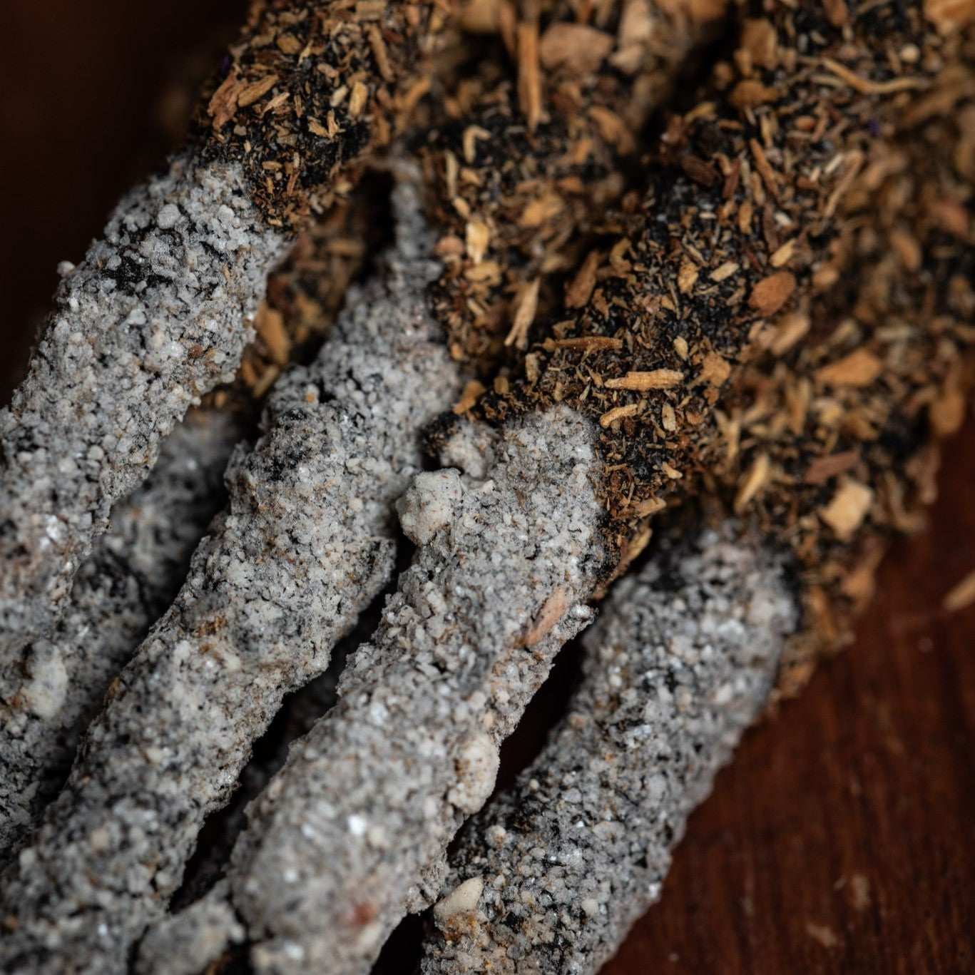 Sudedamosios dalys: 100 % natūralios Palo Santo drožlės, yagra žolė, augalinis rišiklis ir vaisių biomasa.
